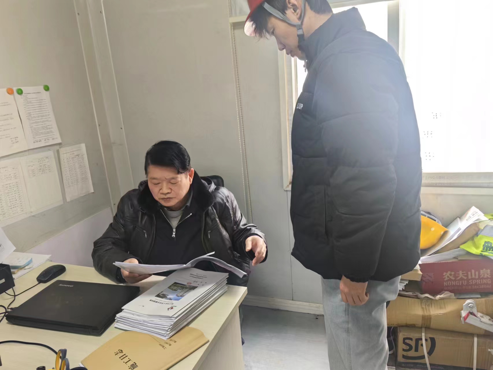 張部長(zhǎng)核實(shí)項(xiàng)目施工日志記錄情況